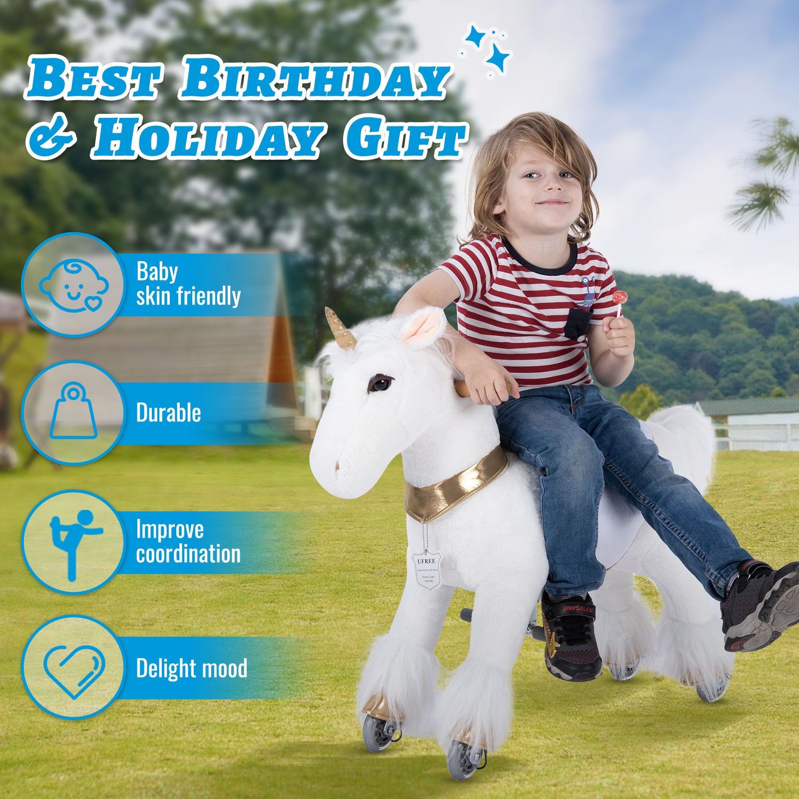 UFREE Riding Unicorn, Unicorn Ride on Toy Riding Unicorn Plush Animal, Golden Unicorn for Kids Ages 3-6